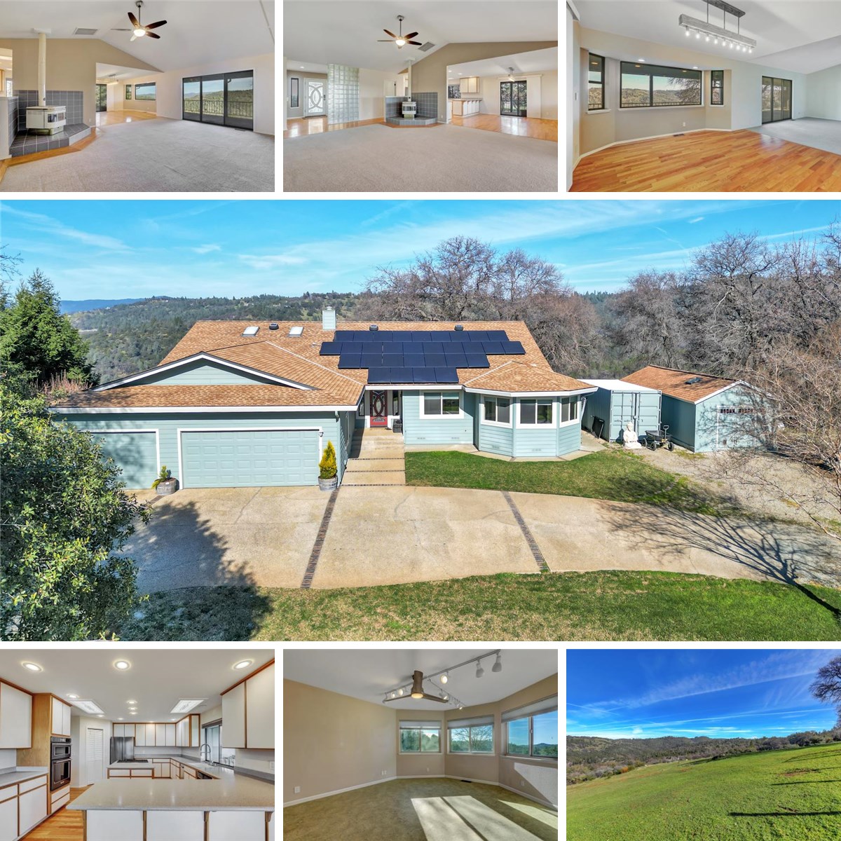 Welcome to your private paradise nestled in Nevada County! This stunning 3-bedroom, 2-bathroom home offers 2,304 square feet of comfortable living space on 10 acres, surrounded by views that will take your breath away! Step outside onto the generous wrap-around deck and immerse yourself in nature's splendor. The fully fenced property showcases mountain views, trails perfect for morning walks filled with native vegetation and wildlife. A tranquil pond anchored by a charming gazebo creates the ideal spot for quiet reflection or entertaining guests under the open sky. For those with equestrian dreams, this property delivers with dedicated horse amenities, including a round pen ready to accommodate your four-legged companions. Additional outbuildings include a practical 12x32 shed, a versatile Conex box, and a smaller shed for all your storage needs. Inside, unwind in the built-in sauna after a long day, or gather around the wood-burning stove during cooler months. The home runs efficiently with owned solar panels and a reliable Generac generator, ensuring peace of mind and energy independence. NID water and the canal that runs along the property add to the appeal. Gather around the fire pit under starlit skies, or simply unwind on the deck as the sun sets over the hills. This property seamlessly blends modern conveniences with rustic charm, offering a peaceful escape from the everyday hustle. Don't miss this rare opportunity to own a slice of paradise where nature meets comfort. Schedule your private showing today and experience the tranquility for yourself!