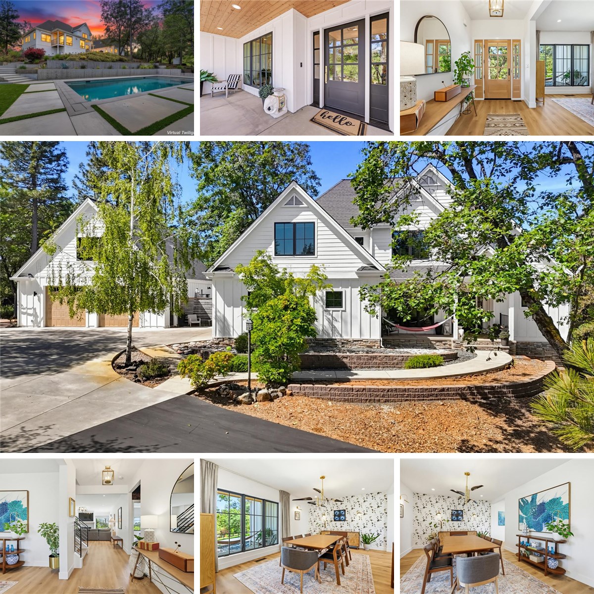 Dramatic Contemporary home nestled on a lovely knoll top 4.6 acre parcel with big sunset views, inground swimming pool and a fantastic high end-neighborhood. Located minutes to town with a lovely sense of privacy and over 3000 s.f. of gracious living! 9' ceilings invite the natural light and views into this great floor plan with day to day living on the main level! Gourmet kitchen with center island, stainless appliances and access into an enclosed sunny patio for outdoor dining! Romantic Master suite offers solitude from the other guest bedrooms located upstairs and include a great loft for TV/games or yoga! In ground swimming pool is 20' long and surrounded by a huge patio for summer parties! The back yard is huge and fully fenced for kids and critters! Attached two car garage, plus detached oversized garage with full office and room to develop above. End of the road privacy offers a tranquil lifestyle, while you will enjoy a 5 minute drive to high school and college, shopping plus easy access down to year round Deer Creek. Country living with all modern conveniences is now yours to enjoy for years!