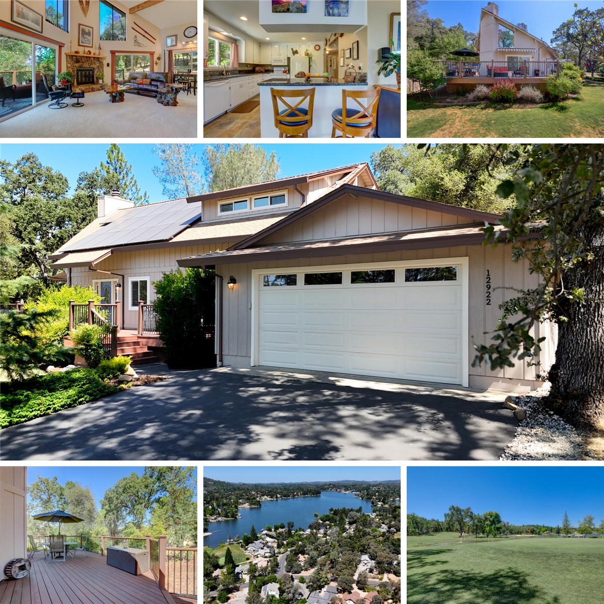 - great location near two parks & boat launch, corners the golf course, tahoe syle feel, newer roof, windows & deck, peeks of the lake, extra tall open beamed ceilings, wrap-around deck, huge picture windows, lots of natural light, 1/3 corner almost flat lot, nice landscaped front, hot tub, new solar lease