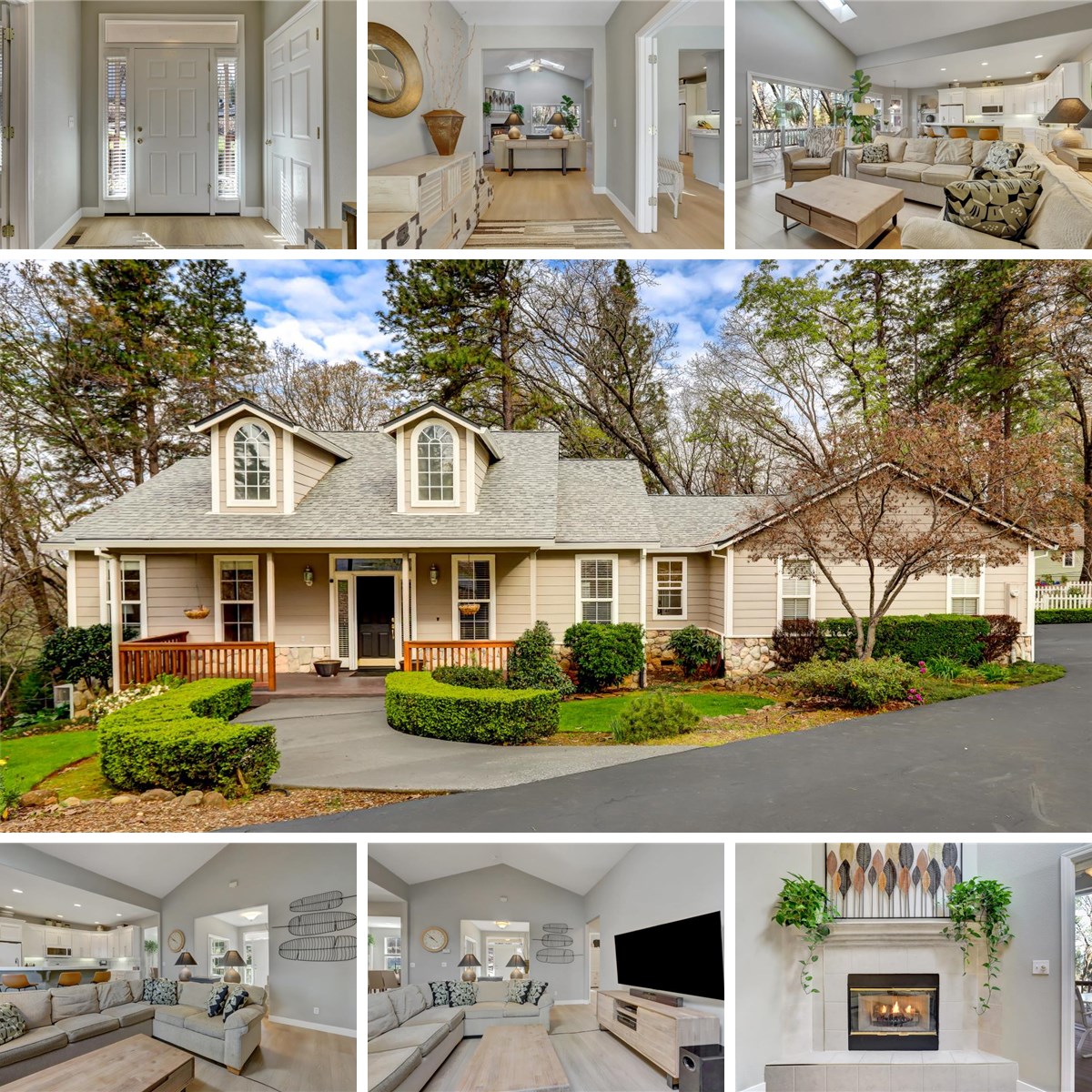 Delightful and charming One story Farmhouse nestled on a sweet cul de sac in the highly desirable La Barr Pines Subdivision, located minutes below the City limits of Grass Valley. Covered porch invites you into the sunny open floor plan with vaulted ceilings and surrounding windows which accent the great room! Lovely cook's kitchen with center island, walk in pantry and stainless appliances. The romantic master suite is separate from the guest bedrooms and the beautiful back deck is partially covered and offers filtered sunset views while enjoying your favorite beverage and a good book! Oversized two car garage and loads of parking plus a sweet fenced yard for the pups or Littles! The location is convenient and ideal for a commuter with easy access to Hwy 49! Piped treated water, great internet and affordable fire insurance! New floors completes the impeccable look of this great home! Large unfinished basement offers loads of possibilities! You will be in love the minute you walk in!