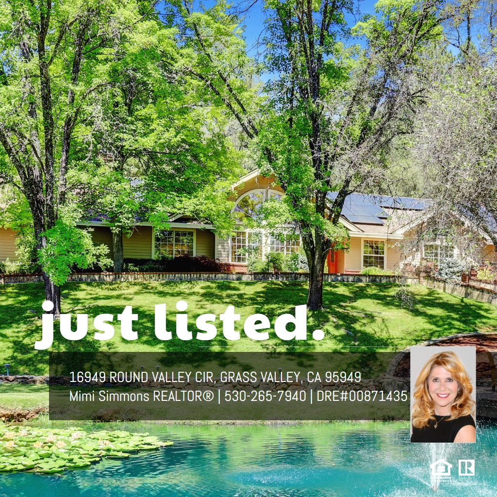 Absolutely charming 3-bedroom, 3-bath, 2,350 sq ft one-story home perched above a year-round spring-fed pond in desirable Round Valley Estates. Situated on 4.14 acres, this garden property offers nature walks, breathtaking gardens, and abundant natural light. The spacious living room features vaulted, open-beam ceilings and picture windows, while the gourmet kitchen and formal dining room are perfect for entertaining. Enjoy the covered outdoor arbor, private observatory, and romantic master suite with jetted tub. The pond includes a deck, boat, and swimming access. Added perks: water canal, newer 40-year roof, whole-house generator, and solar. A true vacation-like retreat minutes from Grass Valley!
