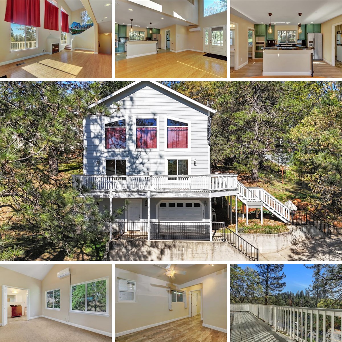 Sunny and Bright with lots of windows. High Ceilings with Great room concept. Beautiful Bamboo Flooring, Granite counters in kitchen, Breakfast bar, Lots of cabinets, walk in Pantry Large Laundry off kitchen. Upstairs is a Loft with double glass doors leading to a Huge Master suite with Large Walk in closet. Master Bath has H Beautiful Tile shower & tile flooring. Lower level consists of another Large Master Suite and plenty of closet space. The full Master bath below has tile floor. Low3r level has a separate entrance from the outside as well as interior stairs leading to the Main living area. Attached to the Lower level is what appears to have been planned for a garage when built but no drive access. This would make a great office space or Extra room for ADU. The garage door that is there can be changed out to an Exterior Large slider if desired. Detached Generous sized Shed for more storage. Room to park 2 cars side by side next to the Shed. A short upslope narrow driveway can provide more tandem parking. Lots and lots of decking front and back. Priced to Sell AS IS. There is a fenced in garden area or pet. If you are looking for a sweet home that has great upside potential, you need to see this one.