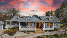 Charming custom farmhouse style with top of the world views! Enjoy lake, river and valley views with gentle paved access and pristine useable land rarely found on panoramic view property. Expansive decking wraps around home perfect for entertaining! Peaceful and private, you can see and hear the waterfall in the river and see Lake Wildwood as well from home and cantilevered back decking leading to gardens. Home has huge open living room to enjoy the views with cathedral knotty pine ceiling, wood burning fireplace and pretty rounded wall entering into formal dining. Brick arched accent pass-through to open kitchen featuring custom cabinets, island, updated appliances, wet bar, pantry and large breakfast area with lovely accents and wainscoting. Master bedroom continues the design including wainscoting, Brazilian cherry flooring and large master bathroom and shower with dual heads. Guest rooms also have beautiful cherry wood floors and Jack and Jill bath with antique vanity and mirror. Four car garage with drop down stairway for storage above and large workbench. Pride of ownership shows in the impeccable maintenance of this home and property!