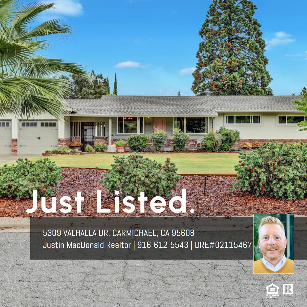 Welcome to Valhalla Dr, a coveted neighborhood where pride of ownership and a sense of community is ever present. 5309 Valhalla Dr is a well loved 3 bedroom 2 bath home with an open concept floor plan, sprawling lot and incredible vintage party room. Beautifully maintained with updates throughout including new painting inside and out, kitchen updates and new carpet in the family room and bedrooms. The step down family room features a large stone wood burning fireplace perfect for family and holiday gatherings. The primary bedroom features an en-suite bathroom and direct access to the backyard. Out back, the patio house exudes mid century vibes with amazing knotty pine walls and ceilings and a custom grill and kitchenette making it the perfect office, game room or possibly future ADU. Don’t miss this opportunity to own a beautiful home on one of Carmichael’s most sought after streets.